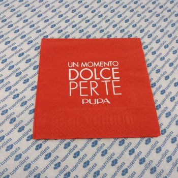 The work of custom printed napkins PUPA has been made in size 30×30 cm. (15×15 cm. closed). 2 layers quality, color Red and printed in White. Size: 30×30 Quality: 2 Layers Color: Red Printing…
